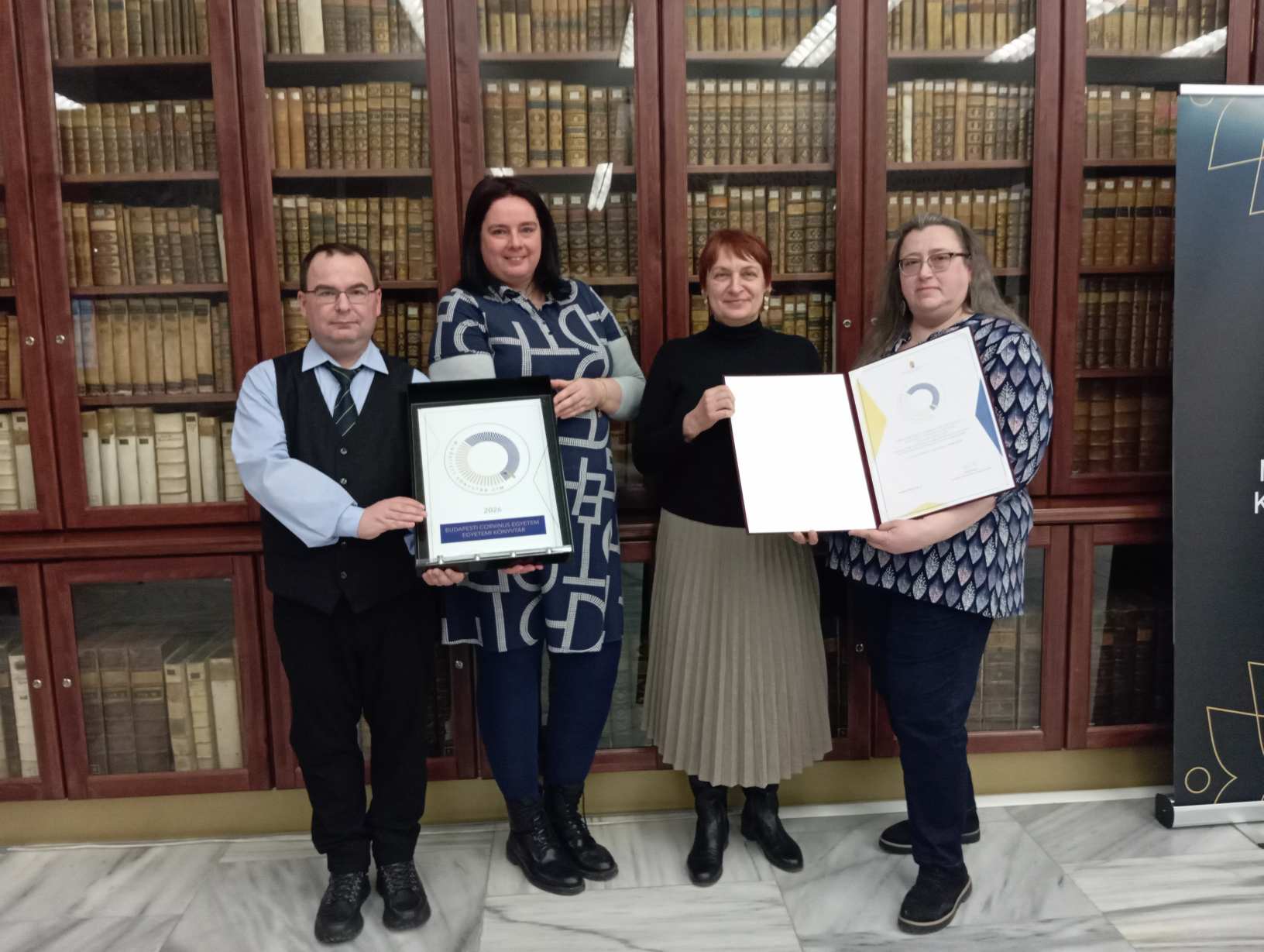 Örömmel tájékoztatjuk könyvtárhasználóinkat, hogy intézményünk elnyerte a Minősített Könyvtár címet. Az elismerést az Országos Széchényi Könyvtárban vehettük át Vincze Mátétól, a közgyűjteményekért és kulturális fejlesztésekért felelős helyettes államtitkártól, valamint Szende Lászlótól, a Kulturális és Innovációs Minisztérium Közgyűjteményi Főosztályának vezetőjétől.