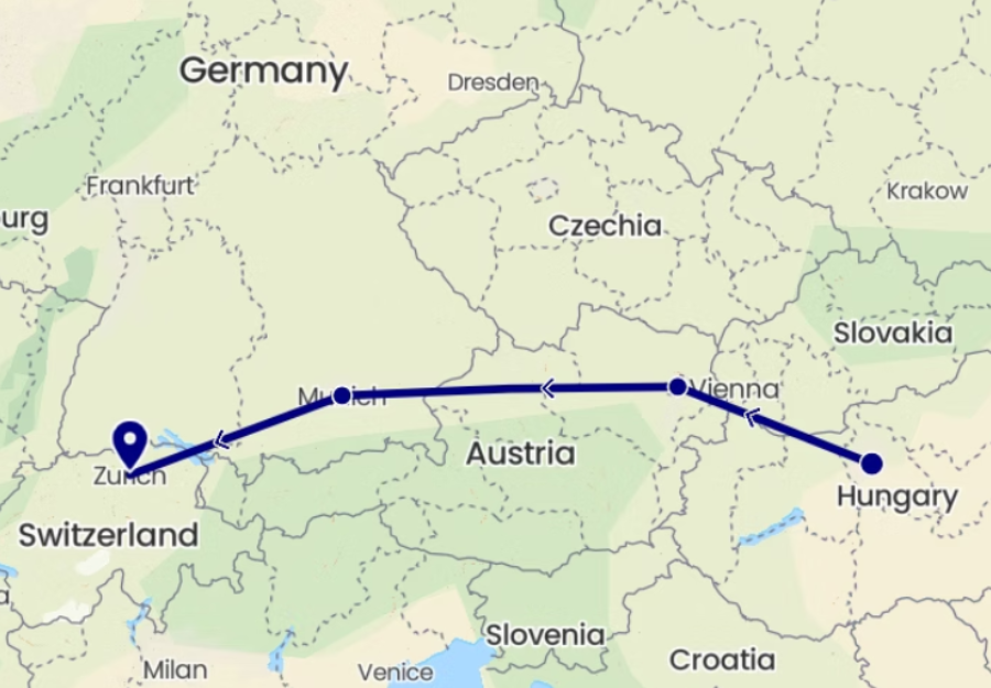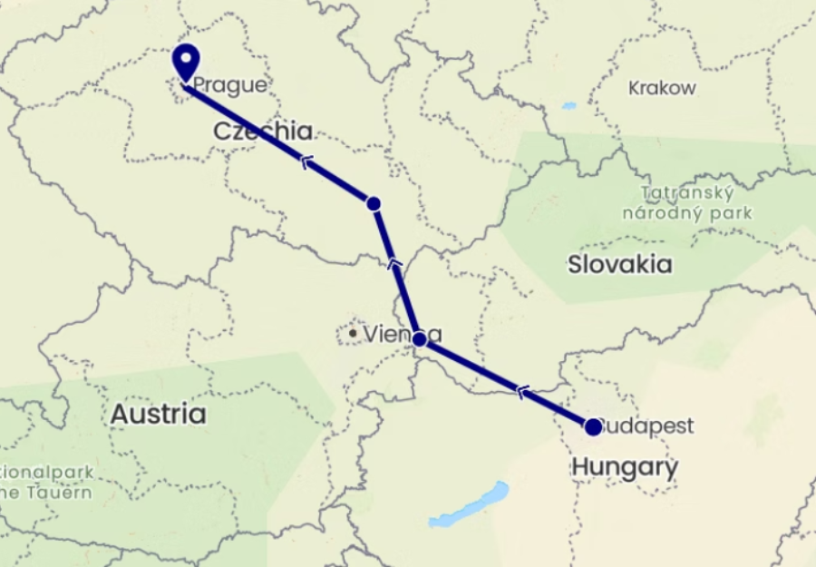 | Budapest → Vienna | ~3h | Easy, fast, and super frequent. Perfect first hop. | ~16 EUR |