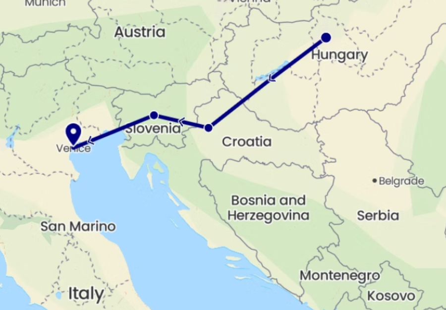 | Ljubljana → Venice | ~4h | From the Alps to canals — a dreamy finish. | ~30 EUR |