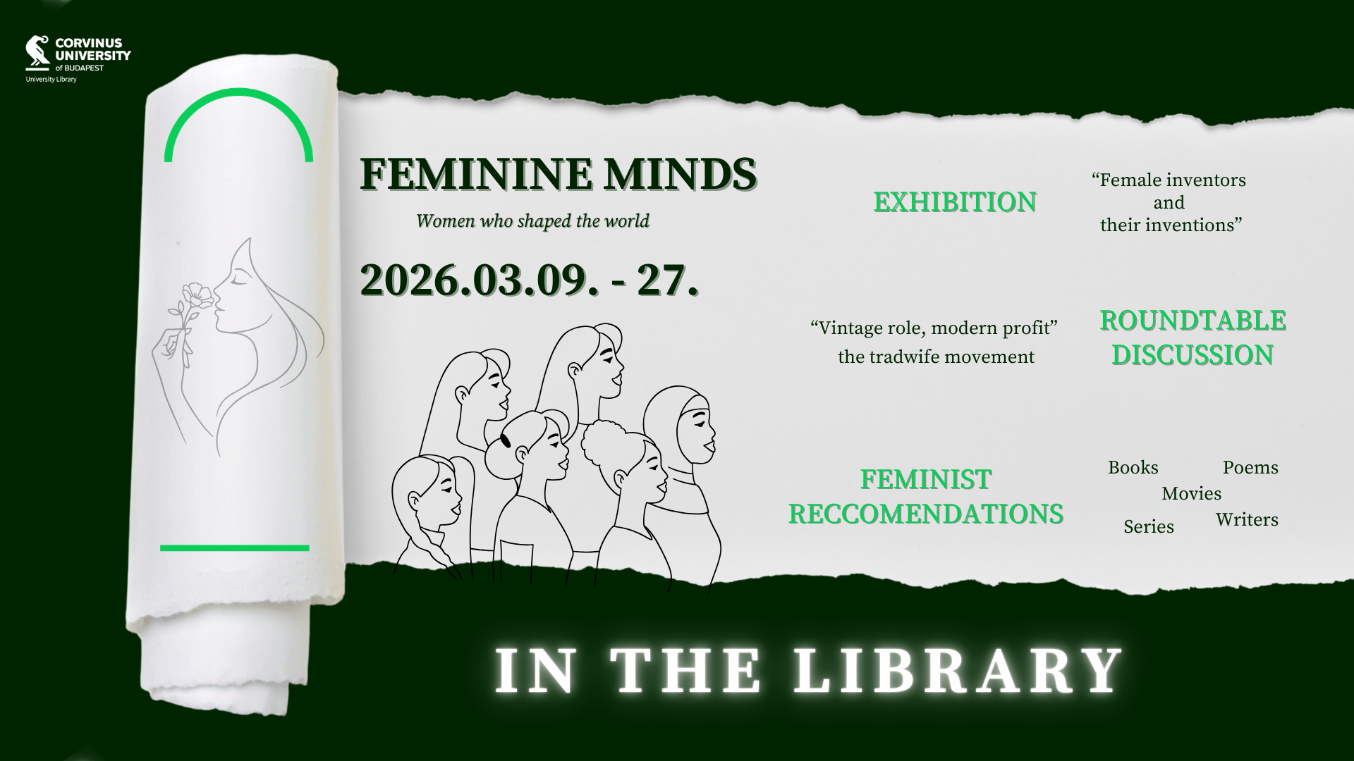 During the last two weeks of the month, poetry screenings will be presented. Poems by female poets will be available to read in Hungarian and English on the library’s entrance level.