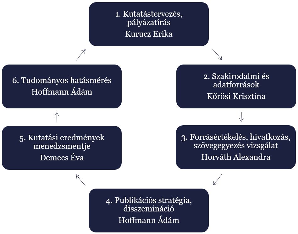 Jelenleg a következő könyvtári tréningekre és konzultációkra lehet jelentkezni. A képzések leírásai a táblázat alatti akkordionban találhatóak.