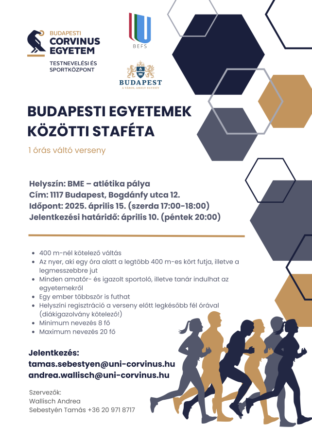 Helyszín: BME – atlétika pálya, 1117 Budapest, Bogdánfy utca 12.