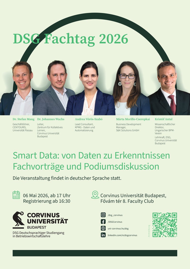 The programme organised by the DSG German Management Training Programme focuses on the topic of Smart Data, featuring expert presentations and a panel discussion with distinguished academic and corporate professionals.