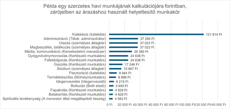 Az eredmények szerint egy átlagos szerzetesi órabér 2411 forint. Ekkora az a költség, amelyet a monostor elkerül azáltal, hogy nem külső munkaerőt foglalkoztat. A kilenc szerzetes így havonta fejenként kb. 400 ezer forintnyi, összesen mintegy 3,7 millió forint értékű munkát végez el fizetség nélkül.