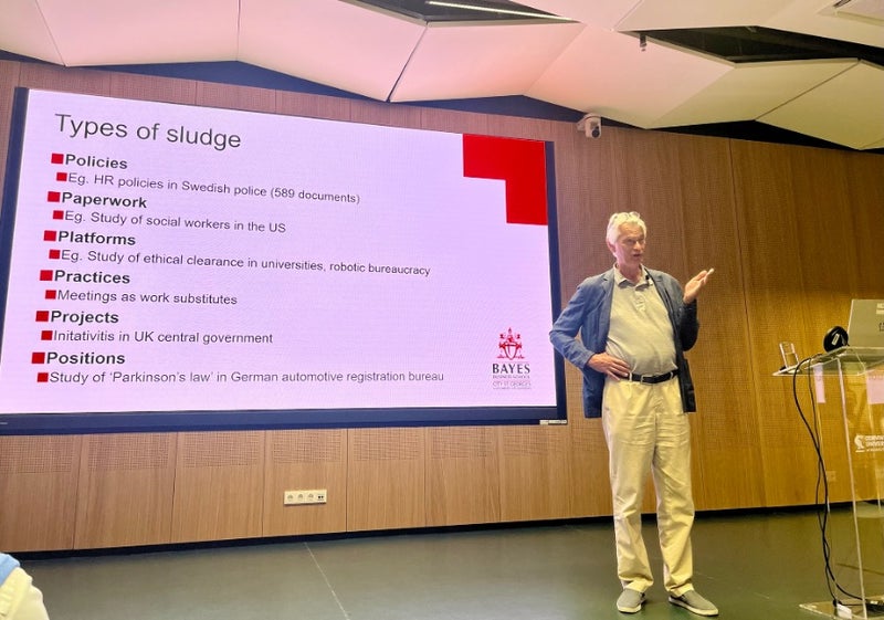 Mats Alvesson előadásában kitért azokra a tényezőkre is, amelyek felgyorsítják a „szervezeti iszapba” történő elmerülést, megemlítve többek között a megbeszéléseket, a felesleges dokumentációs kötelezettségeket, a túlzott jogszabályi szabályozást, illetve a bürokráciát