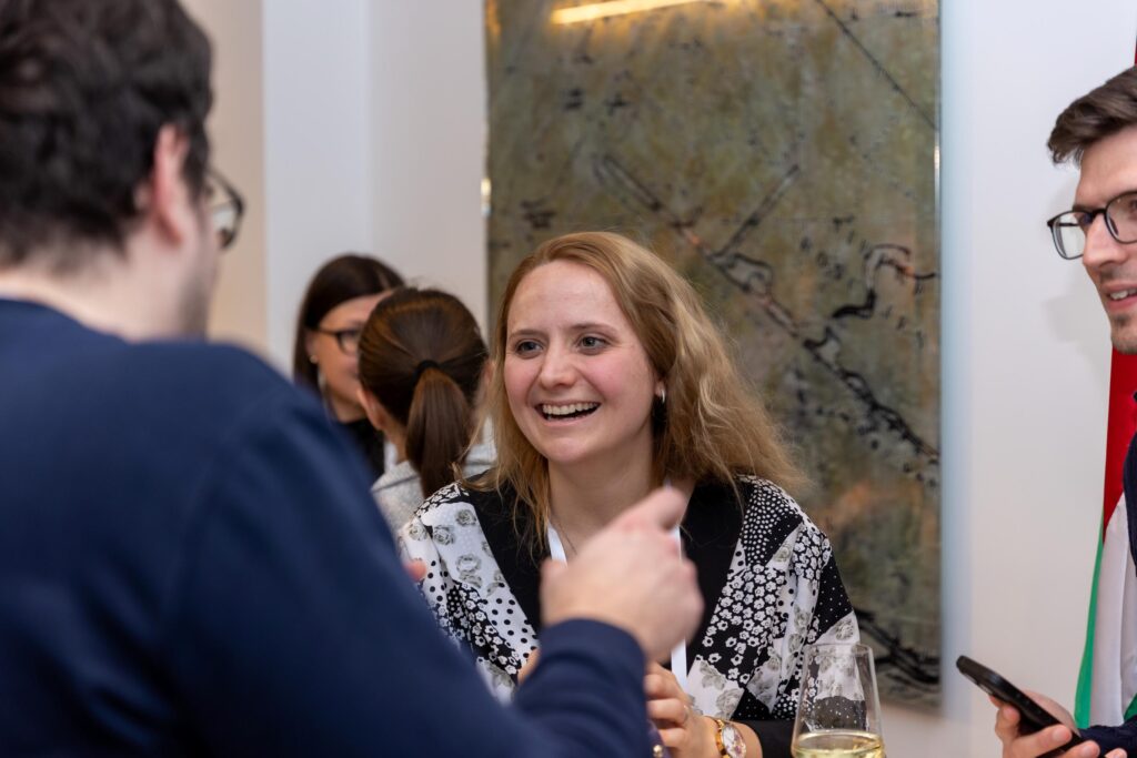 Bruno van Pottelsberghe prezentációját követően állófogadással és kötetlen beszélgetéssel folytatódott az este.