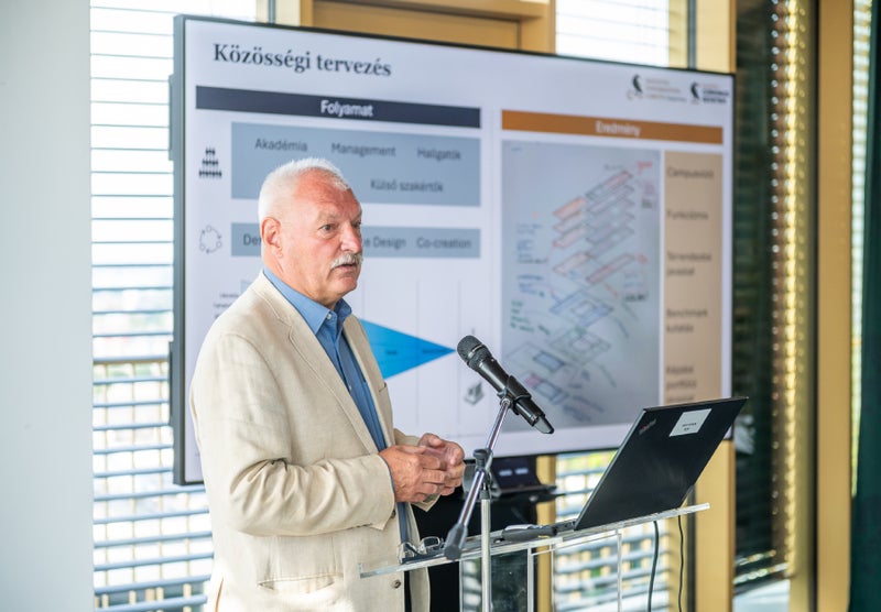 The details and lessons of the project were presented to the audience by Tibor Misovicz, Secretary of the Maecenas Universitatis Corvini Foundation, which maintains Corvinus University. Afterwards, Elek Kabai, Facility Manager of the company operating the Gellért Campus, and Ágoston Flaisz, energy system designer, guided visitors through the building complex.