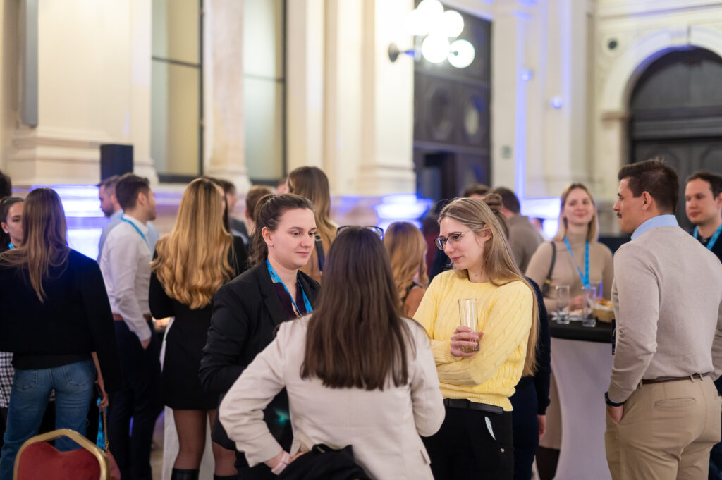 A tavalyi évhez hasonlóan idén is visszahívtuk ünnepelni az egyetem két kiemelt mesterszakán, a Pénzügy, illetve a Vezetés és szervezés mesterszakokon végzett hallgatóinkat. Március 4-én állófogadással egybekötött alumni találkozót tartottunk a két szak az elmúlt öt évben végzett hallgatói számára az E épület aulájában.