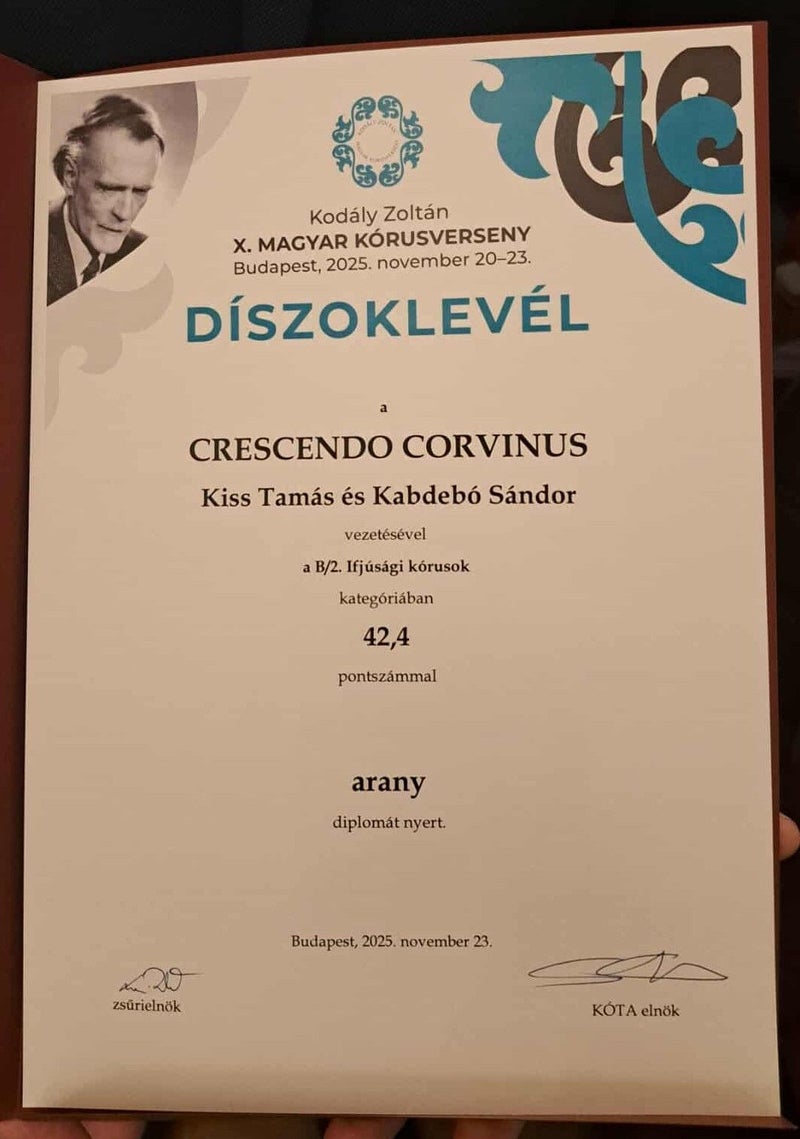 Második helyezést szerzett a Crescendo Corvinus Kórus egy kórusversenyen